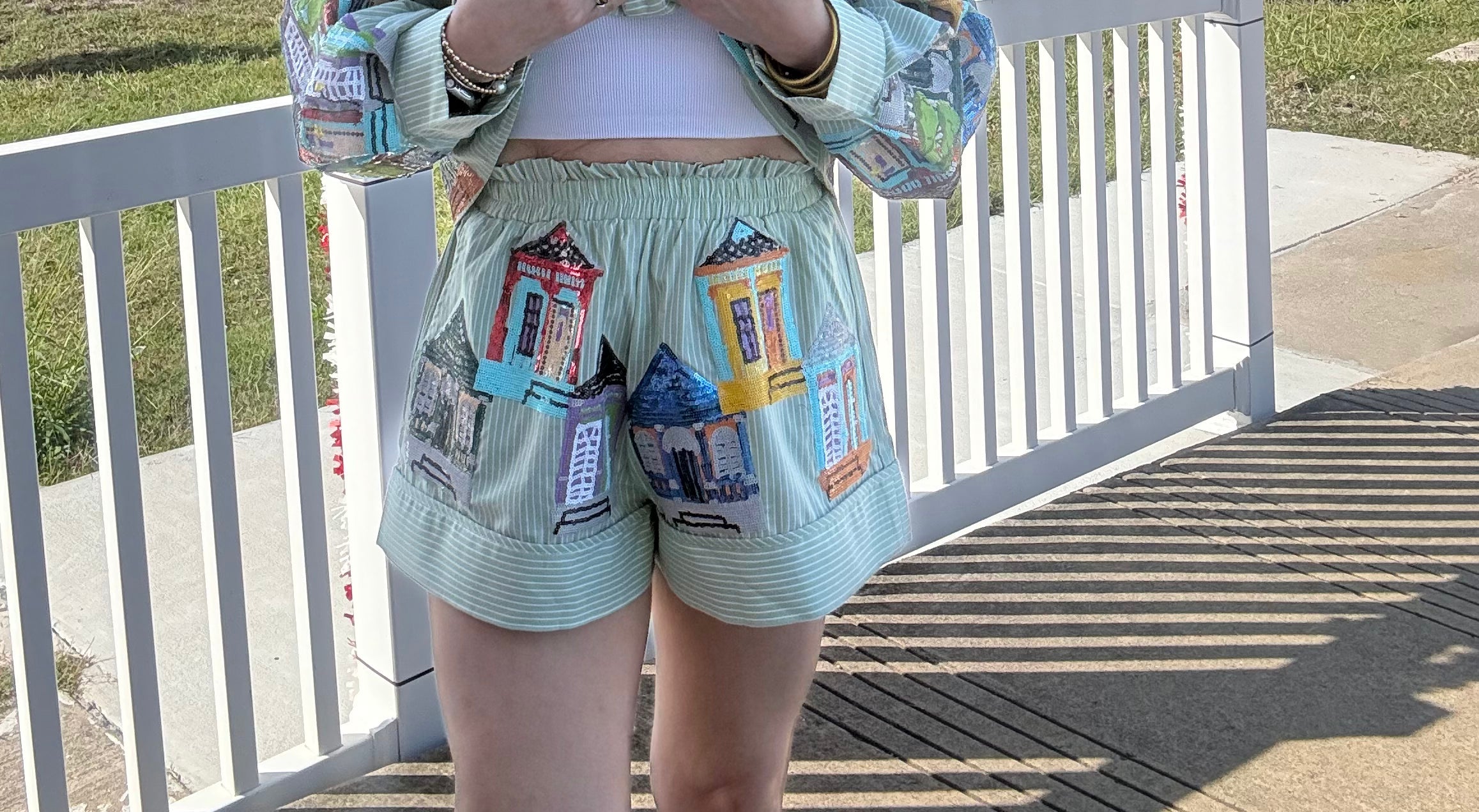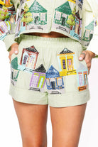Step into Southern charm with the Queen of Sparkles Pale Green Nola Porches Short! This playful piece captures the essence of New Orleans elegance with its soft pale green hue and sparkly details that catch the light just right. Perfect for those who love a touch of glamour mixed with laid-back style, this short brings personality to any outfit. Whether you're channeling your inner Southern belle or just want to add some shimmer to your wardrobe, this is your go-to piece for turning heads and spreading good vibes. Model is wearing an XS.