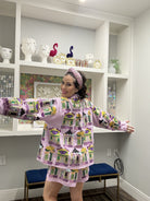 Boutique Bella Bella Purple & White Diamond Mardi Gras Porch Button Up Top