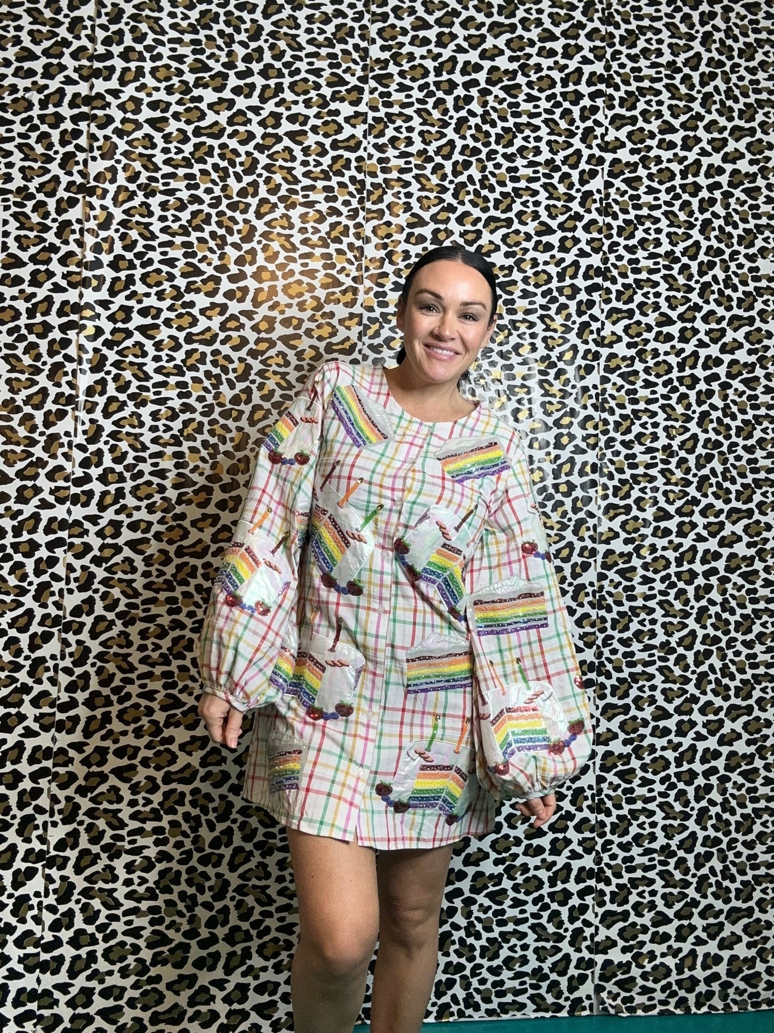 Introducing a delightful option for birthdays and everyday adventures, the Rainbow Plaid Birthday Cake Button-Up Cotton Dress is bursting with color and charm. Its whimsical design and playful button-up style make it an enchanting choice for any occasion, inviting you to embrace your inner royalty and sparkle wherever you go.