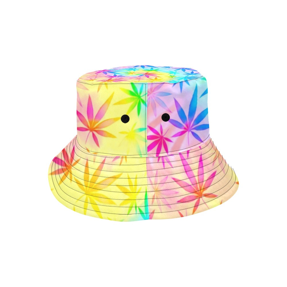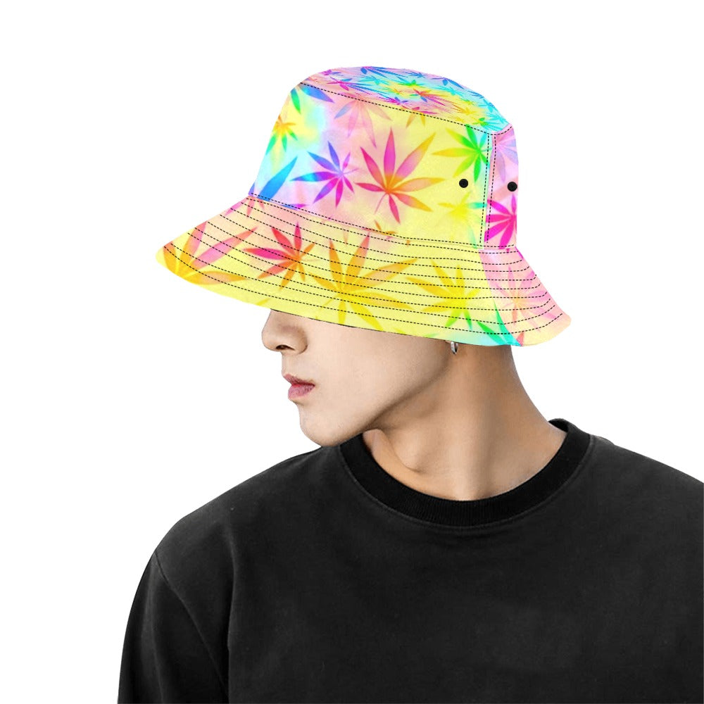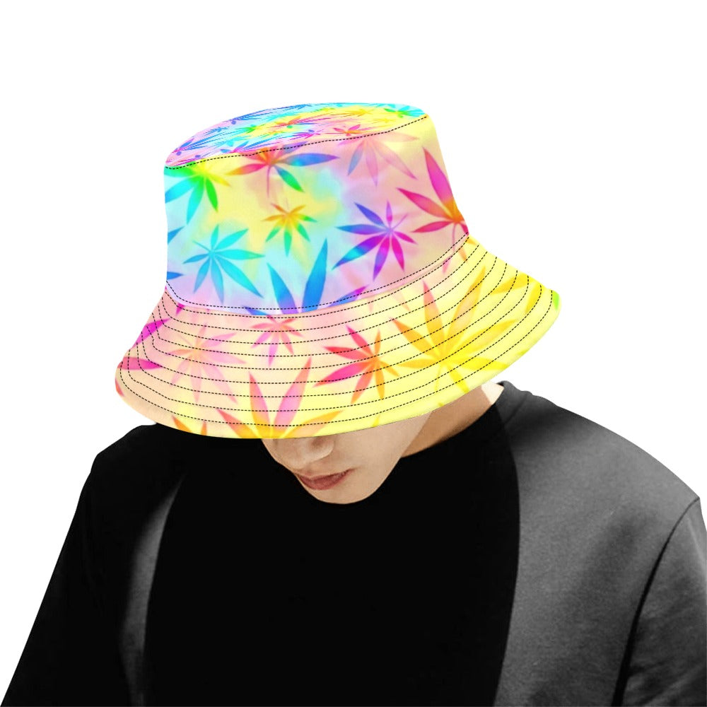 Elevate your outdoor style with this vibrant tie-dye bucket hat featuring a lively cannabis print. Reversible and made from premium cotton, it's not just a fashion statement but a versatile accessory for any sunny day in Texas.
