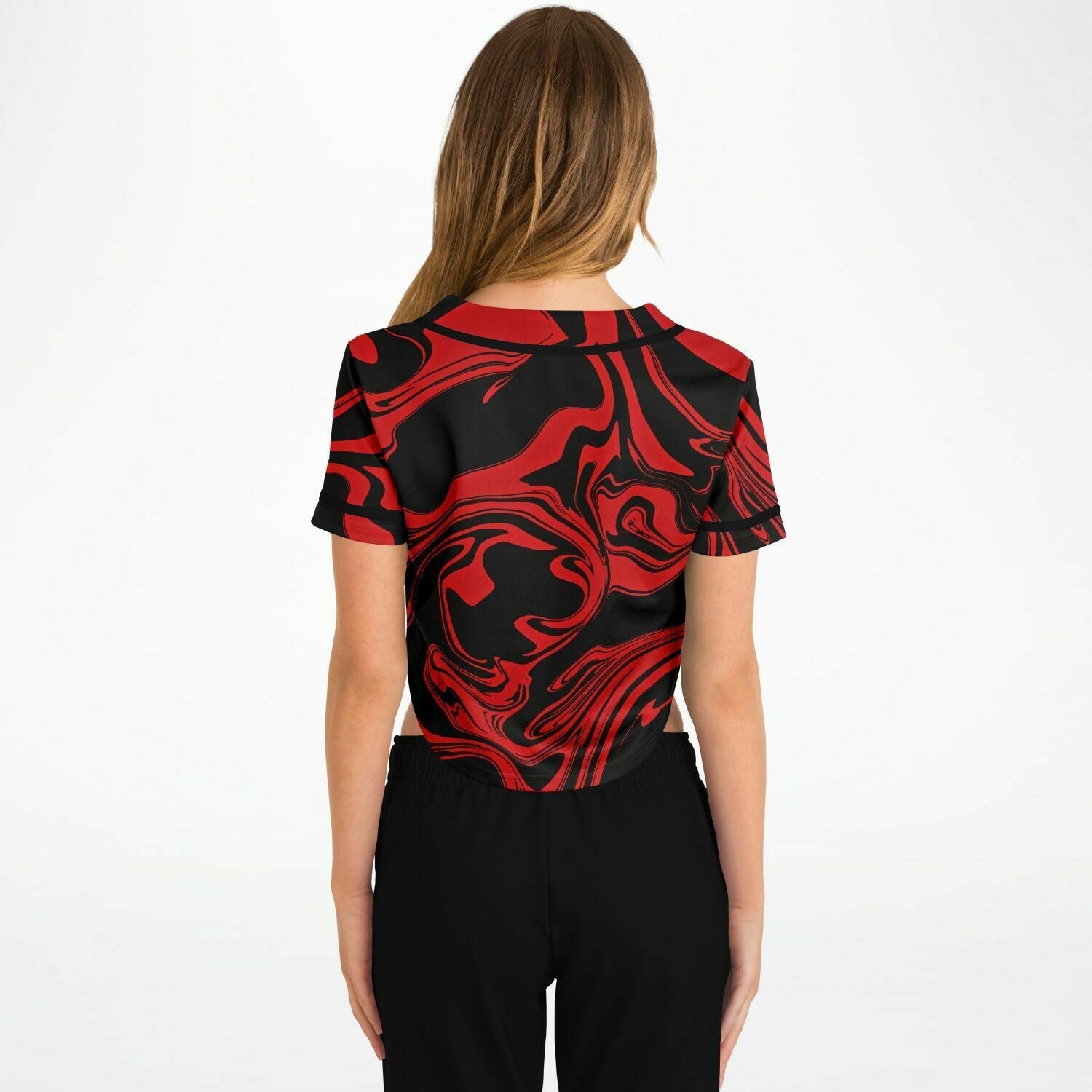 BigTexFunkadelic Red and Black Slime Oil Spill Cropped Baseball Jersey