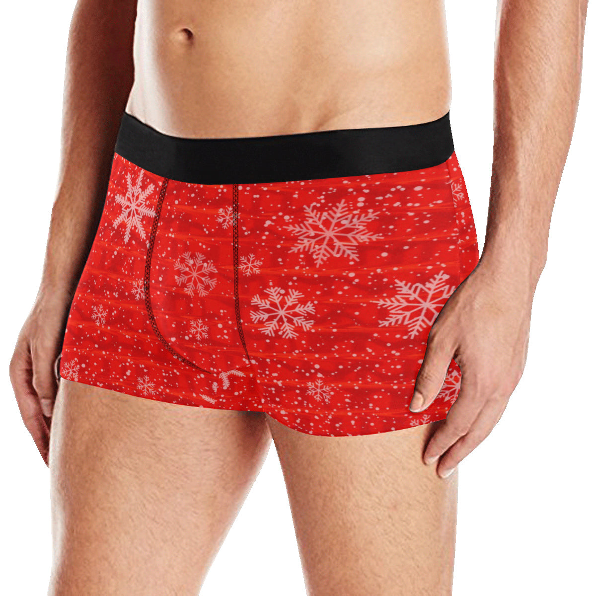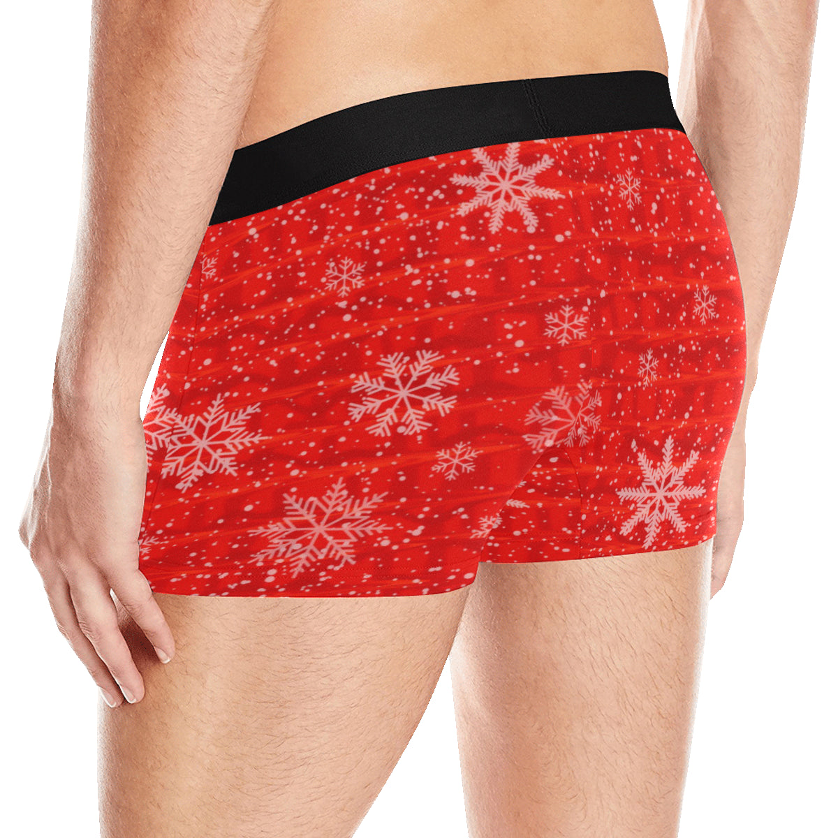 Experience the blend of comfort and holiday cheer with these festive red boxer briefs featuring charming snowflakes. Crafted from elastic 100% polyester, these briefs offer a soft feel that stretches with you, making them perfect for lounging or active days alike.
