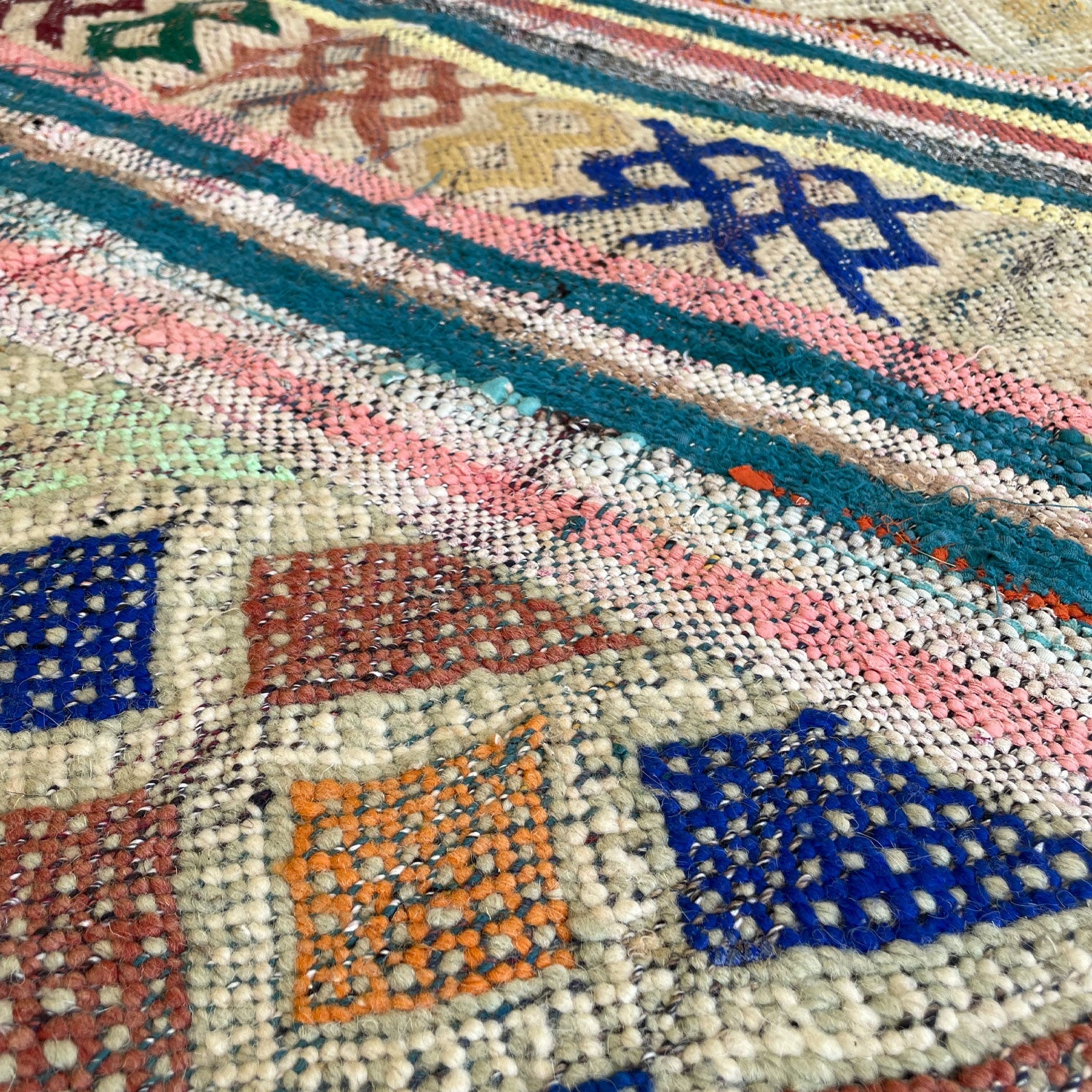 Step into elegance with the Sid Vintage Moroccan Kilim Rug, whose rich multicolor palette and intricate craftsmanship will invigorate any room. This beautiful piece combines history and artistry, offering a unique focal point that enhances both style and comfort in your home.