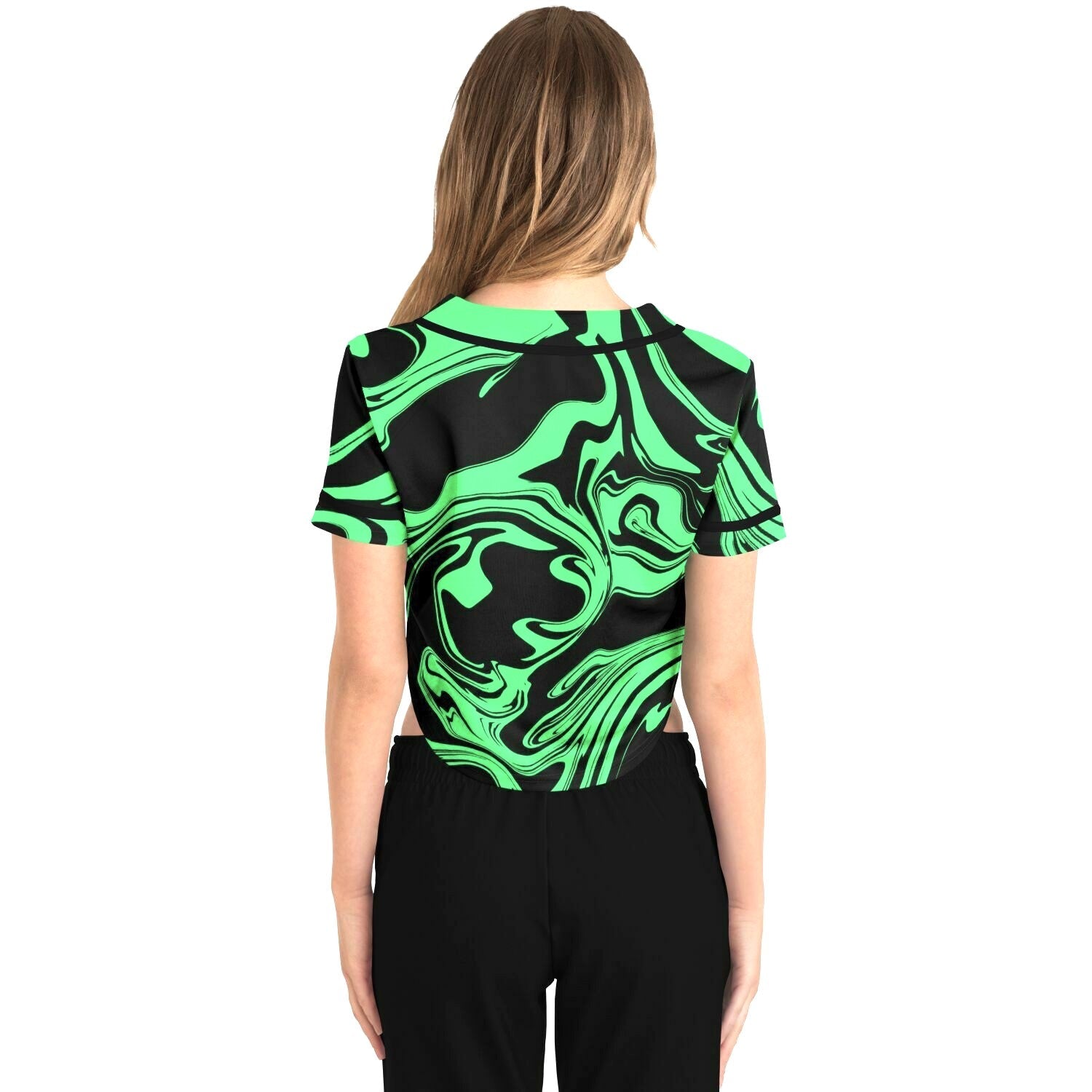 BigTexFunkadelic Slime in the Dark Green and Black Oil Spill Cropped Baseball Jersey