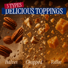 This pack of 6 small Texas Pecan Cakes will make you the envy of the BBQ or the favorite in the office! Enjoy the taste of Texas Pecan Cake with our small personal-sized version. The cake has caramelized edges for a savory brownie like texture and a soft center for a delightful balance of flavors. Cake weights will range from 3.1-3.4oz based on topping selected.