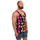 This pink, coral, yellow and black alien tank top from BigTexFunkadelic has everything you could possibly need – vibrant colors, soft material, and a relaxed fit that will make you look fabulous!