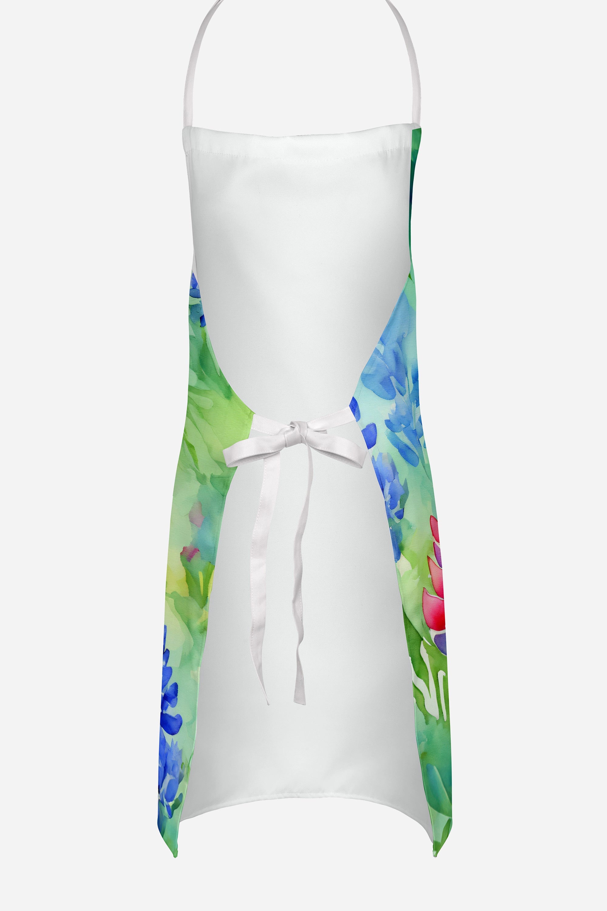 Apron featuring breed specific Texas Bluebonnets artwork. Elevate your cooking, baking, and grilling experiences with our versatile Kitchen or BBQ Apron. This Bib Style apron isn't just limited to culinary activities - it also serves as an excellent baking apron, artist apron, server apron, gardening apron, or even a dog grooming apron. The apron showcases vibrant full-color artwork contributed by one of our talented artists, bringing a dash of style to your daily tasks. With dimensions of approximately 27"W x 30"H, it provides ample coverage to protect your clothing from spills and splashes. Our apron is meticulously crafted from 100% Ultra Spun Polyester, known for its durability and lightweight nature. The apron comes with white tie straps, ensuring a comfortable and adjustable fit for all. It's a perfect choice for kitchen apron enthusiasts, whether you are a woman or a man. Designed for easy maintenance, this apron is fully machine washable. The quick-drying polyester material actively reduces staining, keeping your apron looking fresh and new for longer. Our beautifully designed apron isn't just a functional kitchen accessory - it's a fashion statement in the culinary world!