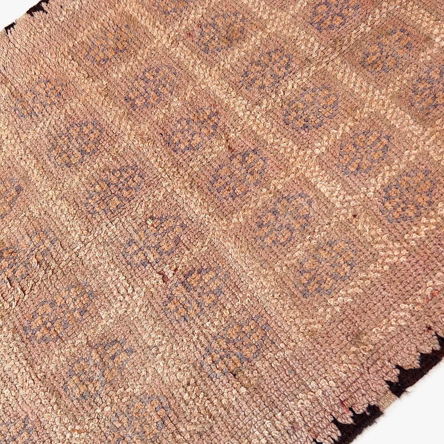 The Theo Vintage Moroccan Rug offers a warm, earthy aesthetic that can enhance any room's ambiance. Its rich brown color and soft wool texture make it an inviting addition to your home, creating a cozy atmosphere that welcomes family and friends.
