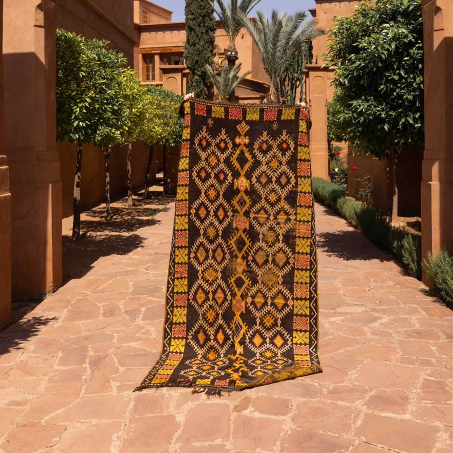 This exquisite vintage Moroccan rug is a stunning blend of rich textures and earthy tones, perfect for adding warmth to any space. Each fiber tells a story of craftsmanship, making it not just a floor covering but a statement piece that embodies the spirit of Moroccan artistry.