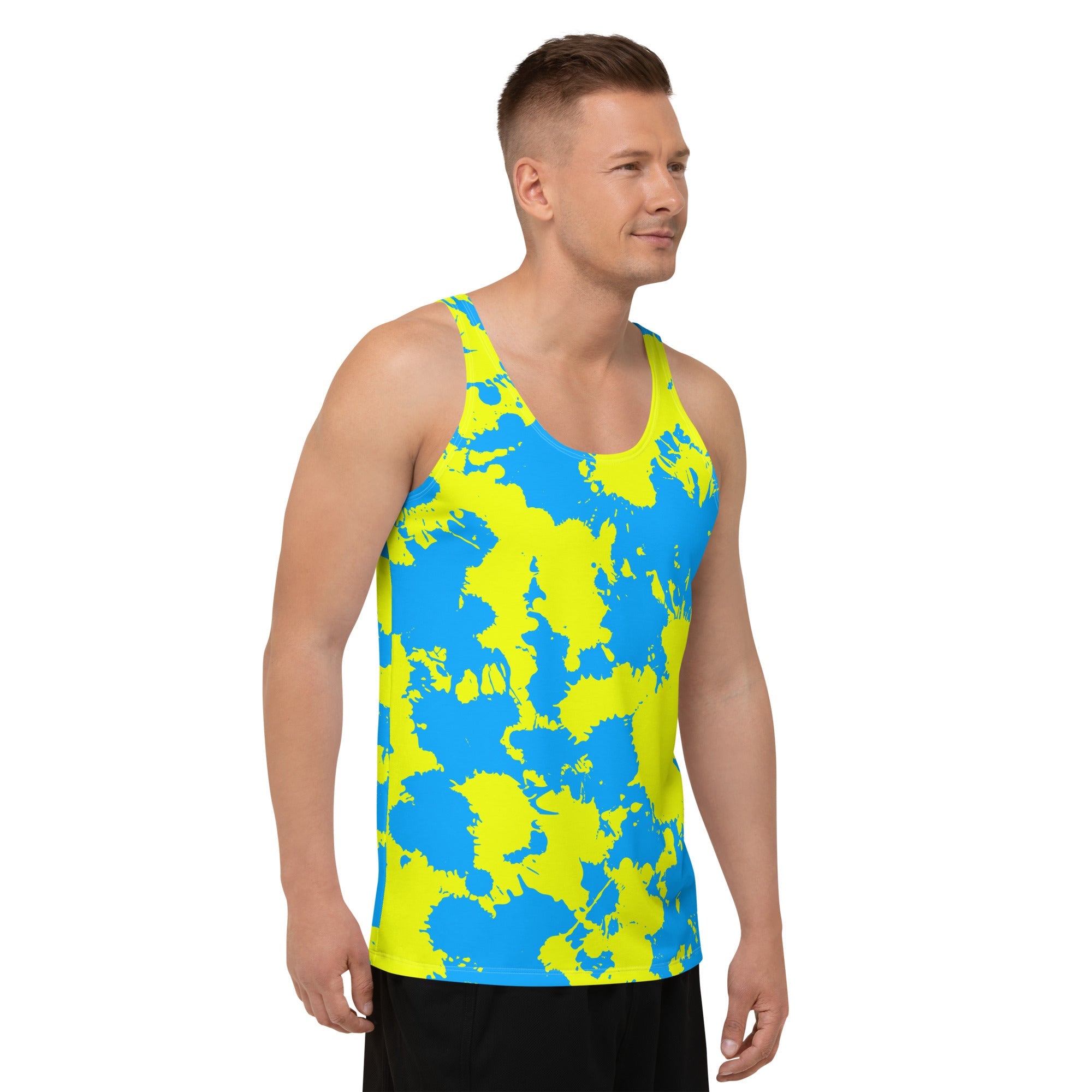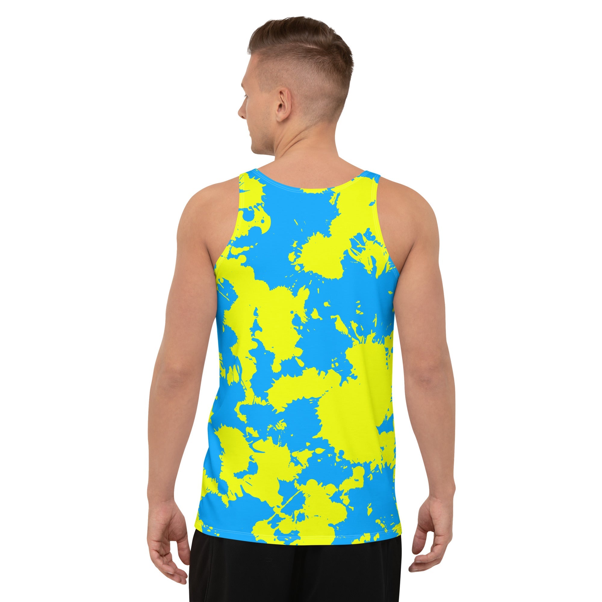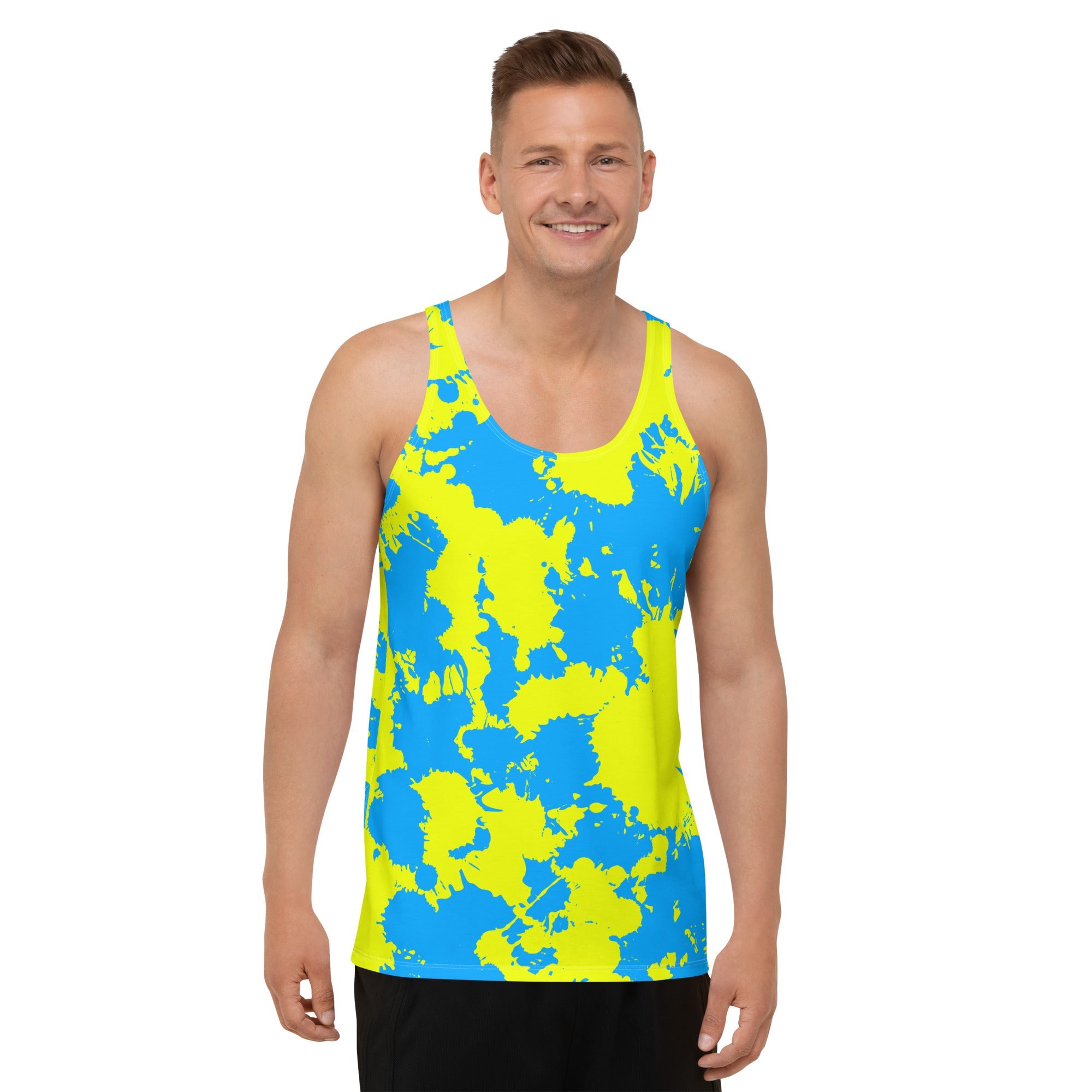 BigTexFunkadelic Yellow and Blue Paint Splatter Unisex Tank Top
